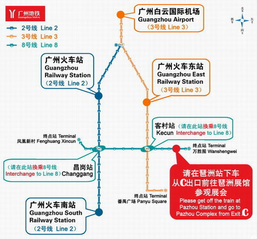 Tips: China Import and Export Fair Pazhou Complex, Area C is near Exit C of Pazhou Metro Station