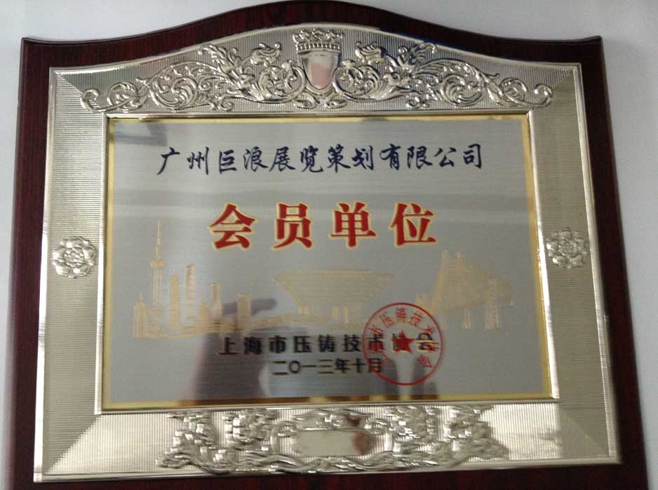 廣州巨浪展覽策劃有限公司加入上海市壓鑄技術協會會員