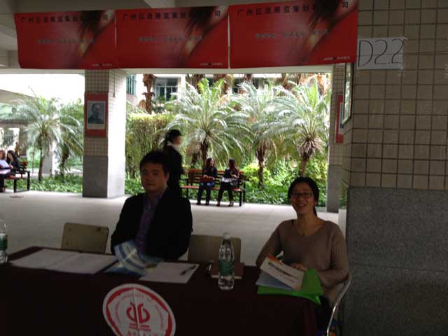 1.由于此招聘會免費邀請我們參展,一開始我們就沒太重視,幾乎沒做什么準備,完全當一日游的心態。本來打算9:00-9:30 分到達展會現場,因招聘會聯系人16日晚發多次短信,并電話確認,我們決定早一點,我們于8:55分到達現場,比他們說的晚了15 分鐘,不過我們算是去的早的, 進展館(學校校區),才發現我們的展位在最后面, 由于沒重視,當時對展位號都沒理會,D2.2#, 也就是前面有A區、B區、C區, 我們在D區。奉勸廣大參展商一定切記,參展一定要早定,并選好最佳展位。